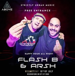 Get ready for A pure urban night with the best DJs in Town!! DJ Flash B & DJ Arsh will be spinning it all night long at Above Amman! Wednesday 10th of July,2019 • FREE Entrance • Happy hour all night long! (25% off on all drinks) Book your table now by calling 0775772000