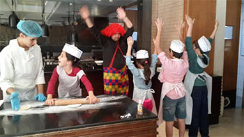 Bring out the culinary art in your kids at Trattoria. Every Friday from 1.00 – 4.00 pm children get together and learn to cook pasta, pizza & more with our specialized chefs and have it for lunch. Scrumptious homemade pizza. Trattoria offers a smoke free dining experience! Some of the fun at Trattoria’s ‘Little Chef” lunch, every Friday! Book your space! Unleash your kids’ talent!
