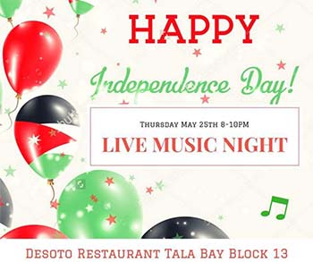 Live Music “Independence Day” @ Desoto Restaurant, Tala Bay