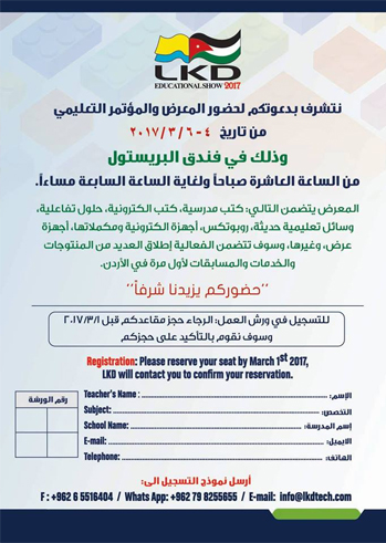 LKD is hosting 22 companies to showcase diiferent educational solutions. The range covers, textbooks, Interactive Solutions, Projectors, Panels, Augmented Reality Solutions, Educational Resources and Supplies, Zero Clients, Classroom Management Solution, And the Launching of the World Robot Olympiad in JOrdan