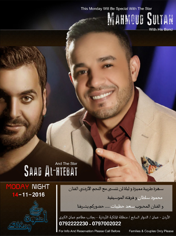 سهرة طربية مميزة و ليلة لن تنسى مع النجم الأردني الفنان محمود سلطان و فرقته الموسيقية
