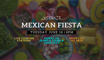 We are bringing a little piece of Mexico to DISTRICT this Tuesday June 18th with LIVE COOKING STATIONS & a whole lot of MEXICAN VIBES!