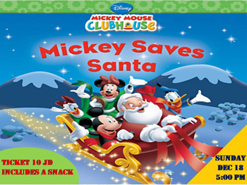 This Sunday 18/12 Mickey Mouse Saves Santa Movie at MiniMozarts Screen…..for reservations please call 0799007880