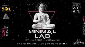 This Thursday 25th of April, SOUND OF AMMAN & TECHNOVATION presents MINIMAL LAB at Buddha Club sitting on the 7th floor of Le Royal Hotels and Resorts – Amman