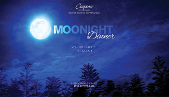 Moon Night , Tuesday 29 of August at CASPIAN Main course of your choice ( grilled salmon, grilled filet & chicken), Salad of your choice, Desserts and glass of wine. 20jd ++. Completely no electric lights but candles everywhere & soft music. And lady Vicy will make sure that it will be a memorable romantic night for you .