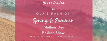 Come by Ola’s Fashion this Mothers Day for our Boutique Fashion Show and Photo Shoot of our new Spring & Summer Collection!