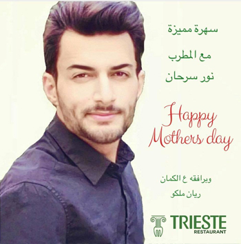مطعم تريستي بمناسبة عيد الأم منسقلكم أحلى ايفينت من ٧ المسا ل ٩:٣٠ المسا، بيتضمن: