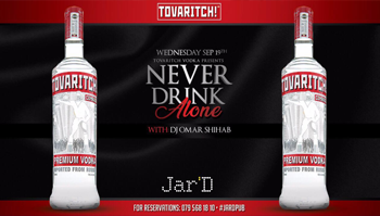 Join us this Wednesday at Jar’D to enjoy an amazing night brought to you by Tovaritch premuim Russian vodka. Join us and be the first to try the ice cold (-18) Tovaritch special shots and cocktails.