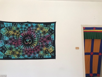 Location: Um Uthaina 33 Samouraa St, ground floor, door with colored prayer flags above it.