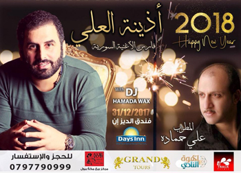 حفل راس السنه في فندق دايز ان عمان يحييه الفنان أذينه العلي والفنان علي حماده والدي جي المميز حماده واكس يتخلل الحفل عشاء بوفيه مفتوح والعصائر والمشروبات الغازيه