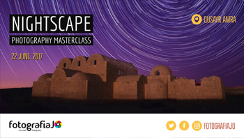 FotografiaJO are pleased to announce a rare opportunity for photographers in Jordan to participate in a Master Class “Nightscape” with the Jordanian landscape photography artists Hadeel AlRamahi & Mohammad Anabtawi. The master class will take place in “Qusair Amra” at Azraq Governerate, each participant shall attend a pre-class session in order to discuss theory and get the needed information about night & astro photography. Seats are strictly limited to 18 participants for a fee of JD 15 JOD, The master class will be held on Thursday 22nd June 2017 and the pre-class session will be one day ahead on Tuesday 20th June 2017 at 9:00 PM at fotografiaJO office Jabal Amman.