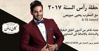 حفلة رأس السنة 2017 رح تكون مميزة بتميز جمال مطعم كان زمان وروعة صوت وحضور المطرب يحيى صويص يلي رح يبلش السهرة معنا ويختم