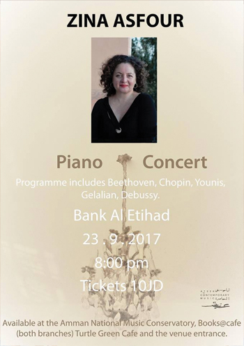 A Piano Concert by Zina Asfour at Bank al Etihad on the 23rd of September at 8 pm
