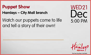 Don’t miss out on a fun-filled puppet show at Hamleys City mall branch this Wednesday!