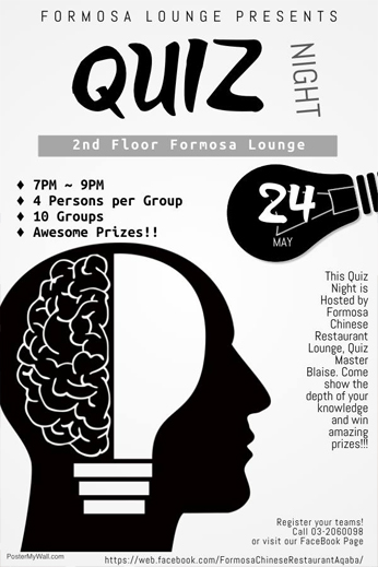 Quiz Night coming up next Thursday night! come and register your teams for AWESOME prizes!!! Hosted by Quiz Master Blaise!