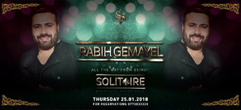 Solitaire is on fire, and this Thursday will be even hotter with the Lebanese super star “Rabi’ Gemayel” the one and only…