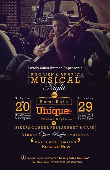 Celebrate the Eid with us this Thursday the 29th at Bikers corner Restaurant at 8:00 pm , for reservations please call 0799537703