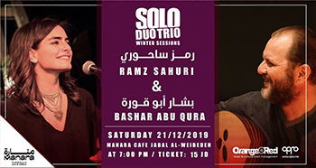 رمز ساحوري وبشار أبو قورة – 21 ديسمبر 2019 في المنارة الساعة 7 مساء