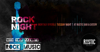 This Tuesday, A ROCK NIGHT at Rustic! Playing your favorite nostalgic rock hits all night long.