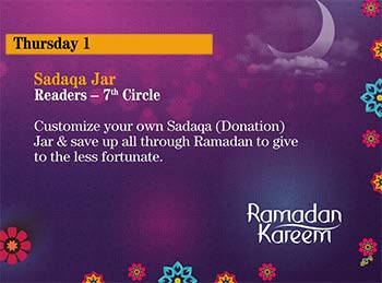 Join us at Readers this Thursday at 4:30 pm & customize your own Sadaqa Jar, save money throughout Ramadan to donate it to the underprivileged! Sign up by calling 065828488.