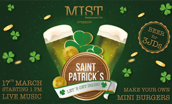 Lets celebrate Saint Patrick’s day together this Friday the 17th of March at MIST, a fun filled celebration of live music, green beers, custom made – create your own mini burgers and a lot more.