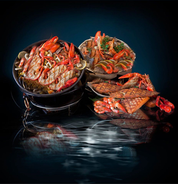 استمتع بالمقبلات المتنوعة، السمك المشوي والمقلية ,الروبيان, فيليه, الريزوتو, بالإضافة الى تشكيلة من السلطات و العديد من الحلويات