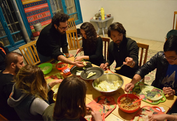 The Shams kitchen – مطبخ شمس is one of Shams’ Community weekly gatherings in which making the food is only half the fun. Participants are teamed up, preferably with strangers, and each team is given a type of food to prepare and invited to follow the recipe, although participants are usually encouraged to improvise. While cooking we engage in a dialogue about a social issue.
