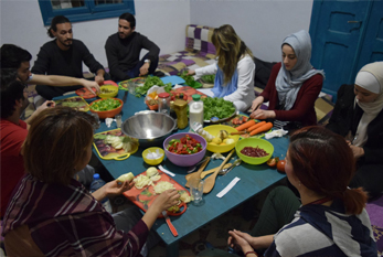 The Shams kitchen – مطبخ شمس is one of Shams’ Community weekly gatherings in which making the food is only half the fun. Participants are teamed up, preferably with strangers, and each team is given a type of food to prepare and invited to follow the recipe, although participants are usually encouraged to improvise. While cooking we engage in a dialogue about a social issue.