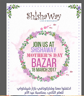 احتفلوا معنا و شاركونا بازار شيشاوي للعام الثاني بمناسبة عيد الأم
