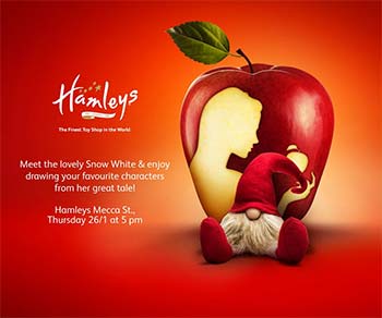 Join us at Hamleys this Thursday to meet the lovely Snow White, draw your favourite characters from her great tale & enjoy special discounts on selected items!