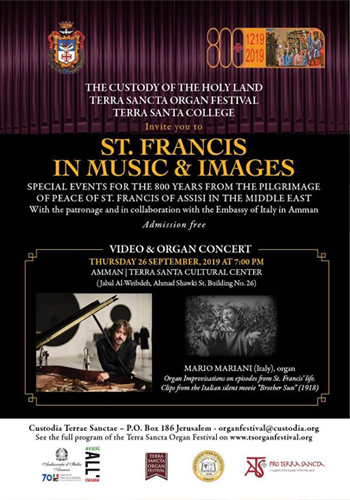 In Jordan, the annual concert of the Terra Sancta Organ Festival, organized by the Custody of the Holy Land, will present a special event on Thursday, September 26, 2019 at 7:00 pm at the Terra Sancta Cultural Center (Jabal Al-Weibdeh, Ahmad Shawki St. Building No. 26) with free admission.