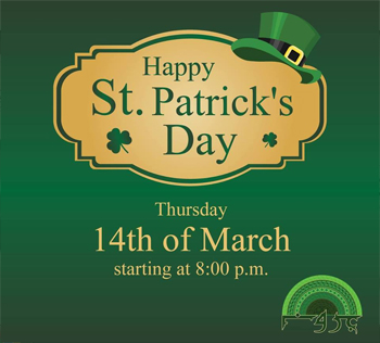 DJ Murad will be spinning the best records, and don’t forget your St. Paddy’s complimentary welcome shot!