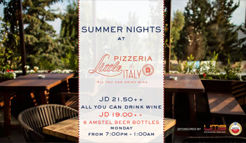 Enjoy our special wine promotion from Santa Margherita, all you can drink win for JD 21.50 ++ in addition to our special bucket of 5 beer bottles promotion from Amstel Beer for JD 19.00++ .