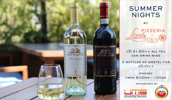 With our ongiong all you can drink Santa Margherita wine offer of the night; a special menu designed to perfectly pair with our wine selection and Amstel Beer offer; buy 3 bottles of Amstel 5% OR Amstel Lite for JD10++.