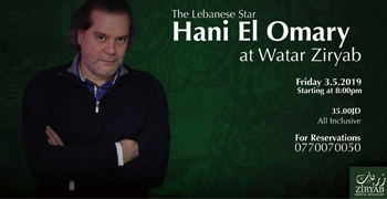 A Tremendous night with the lebanese star Hani El Omary this Friday 3.5.2019… For Reservations call 07 700 700 50