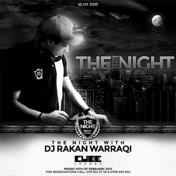The Night present DJ- RAKAN WARRAQI in one of the best nights in town. Friday the 10th of February at Cube Lounge. Best of Hip-Hop, RnB and the greatest dancing tunes. Mark the day and Join us. 10JDs entrance with one warm up shot. Doors open at 10pm. For reservation and information please call: 0798343736 or 0799855955