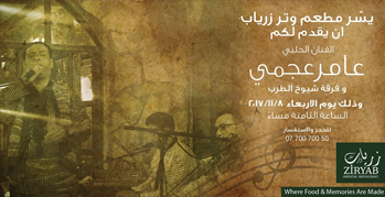 Amer Ajami & The band are performing once again this week at Watar Ziryab On Wednesday 8th Nov 2017… Hurry Up !!! And Reserve Your Table On 07 700 700 50