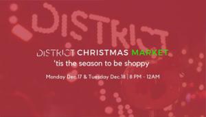 'Tis the season to be shoppy at District's Christmas Market this Monday & Tuesday and enjoy the amazing local vendors selling their latest and most unique line of products Eat, sip and shop your last minute Christmas gifts, winter attire, home necessities, mouth watering flavors, beautiful handmade items, him & her gifts, jewelry and much more District Amman Daily Happy Hour 1PM-8PM. 50% OFF #DRINKS & 30% OFF #FOOD.