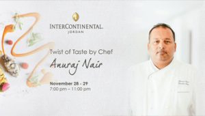 Twist of Taste by Chef Anuraj Nair Join us at Indu for a night of Indian food with a modern twist! A lavish menu prepared by the several award winning Chef Anuraj Nair, Indian born with experience of 22 years across the Middle East, Europe, and Australia. November 28 & 29 7:00 pm – 11:00 pm For more information & reservations +962 79 8558 888