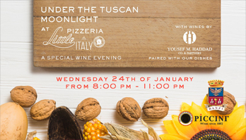 We’re bringing Tuscany to you! This January 24th experience an authentic Tuscan night at Little Italy – Pizzeria with specially selected wines from Yousef M. Haddad Co. & Partners carefully paired with our exclusive dishes.