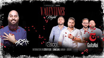 We got your valentines day covered at Esco Bar & Lounge! Join us Thursday 14th of February with the one and only GuitaNai (جيتاناي) and Hamzeh DjArsh for an unforgettable night! 20 JODs entrance with one drink Book your table NOW by calling 0799111519!