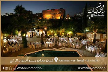 وتر رمضان راح تكون ب (فندق عمان ويست – الدوار الرابع) , بأحلى قعدة و أحلى السهرات مع العيلة و الاصحاب …. بنستناكم بشهر رمضان لتعيشو اجمل الاجواء بس في وتر رمضان. للحجز والاستفسار : 0799032001