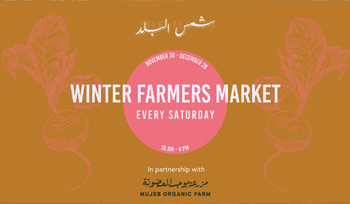 Get your hands on the products that make our food delicious, from organic produce and free range eggs to fresh baked goods, local dairy and more. The market will bring together our passionate suppliers every week, including Al Amal Dairy, Bunni Coffee, Tchaba, Bayouda Village and of course Mujeb Organic Farm, as well as many others. There’s going to be mulled wine, seasonal soups, fresh juices and coffee for you to enjoy!