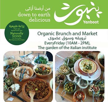 As promised, this Friday we will be back with our delicious oganic weekly brunch at the Garden of the italian institute. Come and try our fresh juices, home-made bread and sweets, fresh organic salads, fried high quality Nablousye cheese, omelettes with free-range and antibiotic free eggs and much more.