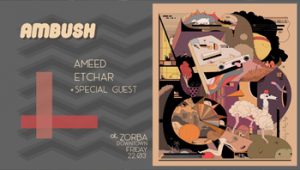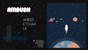 Ambush is a night happening every FRIDAY at Zorba Downtown. This weekend deck duty goes to the resident DJs for a special back to back set all night, showcasing ambush Fridays signature sound. Lineup: Ameed Etchar Location: Zorba Downtown Entrance: free before 10:00 // 10JDs after 3 Hard drinks for 10JD before 12AM NO VISA (Cash only) Doors open: 9:00PM Couples & mixed groups *Valet parking is available More info: 0796216316