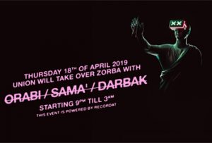 Recordat is bringing UNION from Palestine to take over Zorba downtown this Thursday 18th of April starting 9 PM with: Orabi (Haifa) https://soundcloud.com/hamody-orabe-huseen سماء 'SAMA https://soundcloud.com/sama_saad Darbak (Ramallah) https://soundcloud.com/darbak UNION is a music collective from Palestine offering artists the space to interact, learn, and cooperate. UNION's artists are the goal to form a collaboration between each other, as well as offering them space to have their own projects (from events to workshops). The aim is to expand the underground music …