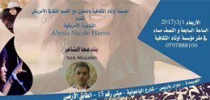 مؤسسة أوتاد الثقافية بالتعاون مع القسم الثقافي الأمريكي تقدم الشاعرة الأمريكية Alysia Nicole Harris الأربعاء 1/3/2017 الساعة 7:30 مساءً يقدمها الشاعر عيسى أبو جودة . سيرة الشاعرة الذاتية : ولدت أليسيا نيكول هاريس في فريمونت بولاية كالفورنيا وألفت أول قصيدة لها في عمر العاشرة بعد أن سمعت عن وليام شيكسبير في صف اللغة الإنجليزية. وأضحى هذا الصف بداية حياتها في عشق الشعر والفنون الأدبية. درست أليسيا تخصص اللغويات في جامعة بنسلفانيا حيث ركزت على اللغتين العربية والروسية والإنجليزية القديمة والتنوعات …
