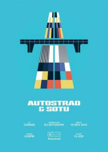 اوتوستراد و فارس الاقراص صوت وصورة رح يلعبوا احلى موسيقى و طاقات في كانفاس (جبل اللويبدة) الجمعة ١٨ نوفمبر و اهلا و سهلا بالجميع و ميت مليون اقوى نوع :) تفتح الابواب الساعة 7:30 مساء التذكرة 10 دنانير Autostrad & DJ Sotusora will be playing in canvas on Friday the 18th Welcome everyone, join us and let's have all the energy in the world, and as we say 100 million agwa no3 Doors open at 7:30 pm Ticket price : …