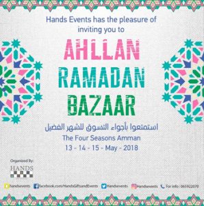 The holy month of Ramadan is coming soon.. and Hands Events will be ready to celebrate & help you prepare it's arrival! Join us at Ahlan Ramadan Bazaar taking place at the Four Seasons Amman on May 13, 14, and 15. Bringing together the most unique designers for a Ramadan shopping festival where you will find all the must have items to get into the spirit.. galabiyas, kaftans, home accessories, ramadan decorations, women accessories, beauty products, summer fashion, and a …