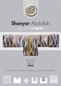 An art exhibiton by Sahnyar Abdullah "regular and irregular" On Nov. 8th 2017 at 6:00pm. The exhibition will run until Nov. 22nd 2017 For info please call 065526932 افتتاح معرض الفنان شنيار عبد الله "المنتظم و اللامنتظم" يوم الأربعاء الموافق 2017/11/8 الساعة السادسة مساءً سيستمر المعرض حتى 2017/11/22 للاستفسار تلفون 065526932